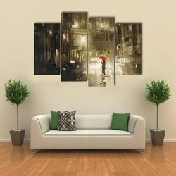 - Woman In Rainy Night Illustration Canvas Wall Art