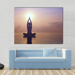 - Silhouette Young Woman Practicing Yoga on the Beach at Sunset Canvas Wall Art
