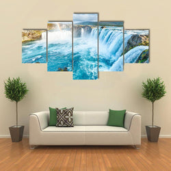 - Godafoss Waterfall with Rainbow Canvas Wall Art