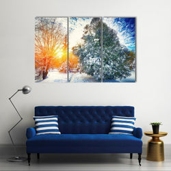 - Winter Sunlight Through Snowy Pine Trees Canvas Wall Art