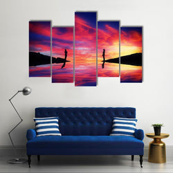 - Boy and Girl Across River at Sunset Canvas Wall Art