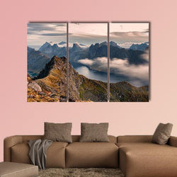 - Rocky Peak Above Foggy Mountain Lake Canvas Wall Art