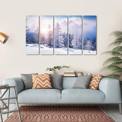 - Snow Covered Trees In The Mountains At Sunset Canvas Wall Art