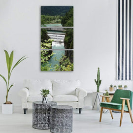 - Turquoise River with Stepped Weir and Footbridge Vertical Canvas Wall Art