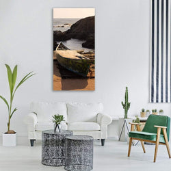 - Weathered Fishing Boat in Golden Light Vertical Canvas Wall Art