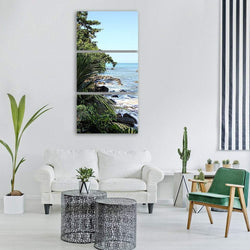 - Rocky Tropical Coast with Palm Fronds Vertical Canvas Wall Art
