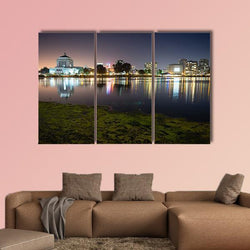 - Merritt Lake Nighttime Skyline Reflection Canvas Wall Art