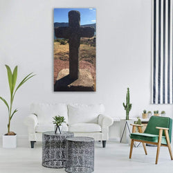 - Weathered Stone Cross Overlooking Mountain Lake Vertical Canvas Wall Art