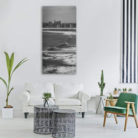 - Crescent Beach Cityscape with Surfer Vertical Canvas Wall Art