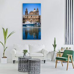 - Sea Boat In Front Of Church In Malta Vertical Canvas Wall Art
