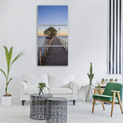 - Pier Leading to Island Tree at Sunset Vertical Canvas Wall Art