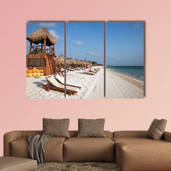- Playa Del Carmen Beach with Thatched Lifeguard Tower Canvas Wall Art