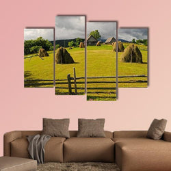 - Three Haystacks in Autumn Field Canvas Wall Art
