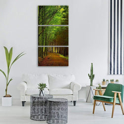 - Sunlit Autumn Forest Path Vertical Canvas Wall Art