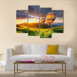 - Three Hot Air Balloons Over Rolling Green Hills Canvas Wall Art