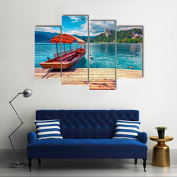 - Boat on Lake with Castle and Mountains Canvas Wall Art