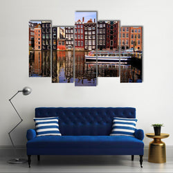 - Canal View of Amsterdam's Traditional Houses Canvas Wall Art