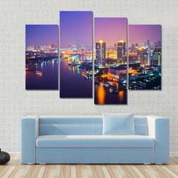 - Bangkok Cityscape at Night Canvas Wall Art